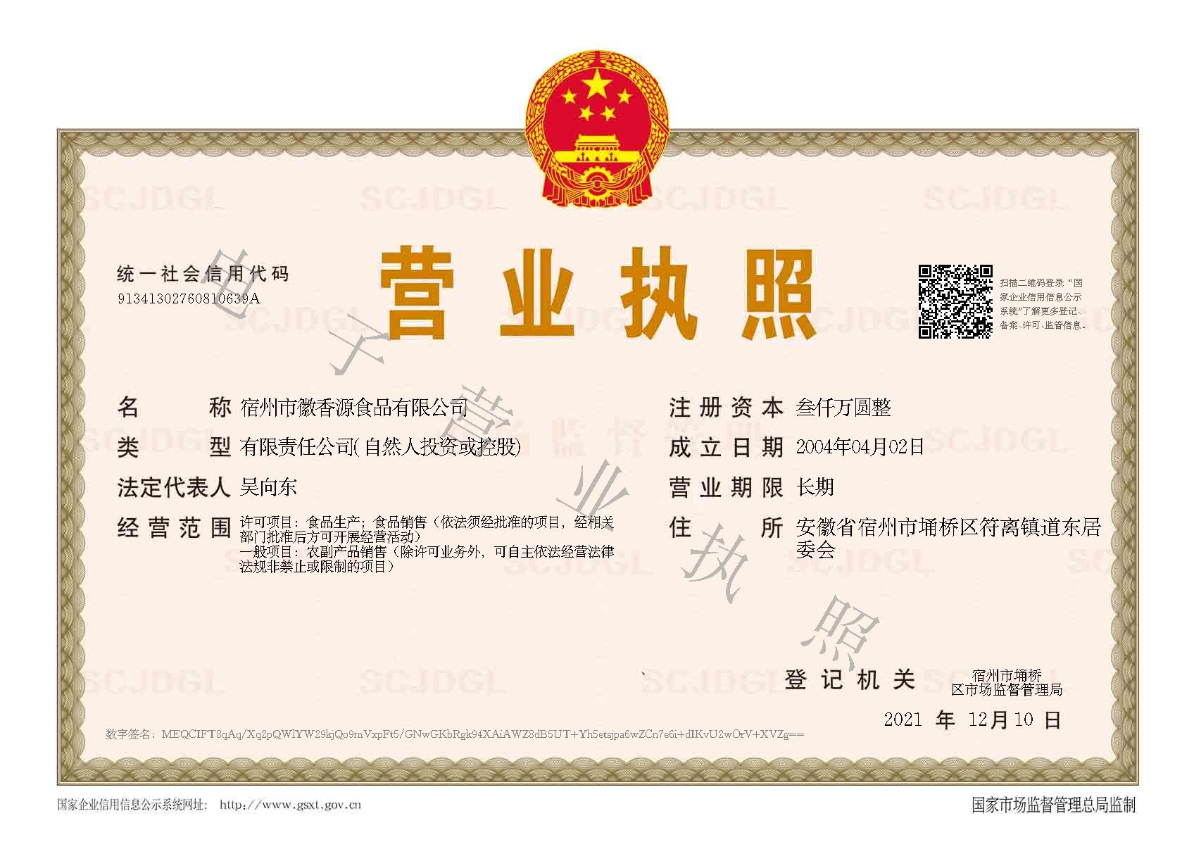 - 宿州市徽香源食品有限公司成立于2004年4月,注冊資本3000萬元。經過近二十年的發展,現已發展成為符離麻雞育種、養殖、研發、加工、銷售于一體的現代化企業、安徽省省級農業產業化龍頭企業。公司所經營的“徽香源”牌符離集燒雞,連續多年被評為安徽省著名商標,獲得“安徽名優農產品”、“全國萬企幫萬村精準扶貧活動先進民營企業”、“2022年新型信息消費示范項目”、“安徽省級非遺工坊”等榮譽。 2021年,公司投資500萬元建立徽香源直播基地,以基地為基礎,建立自己的直播帶貨團隊,包含“主播+助播+運營+中控+客服+電商倉庫”為一體的直播隊伍,擬定“線上+線下”的營銷活動計劃,打造符籬集燒雞品牌發聲及主播合作。2022年實現自播團隊30人,自營賬號20個,播放量破20億,銷售額突破6000萬。 公司以符離集老味燒雞為主打特色產品,不斷創新...